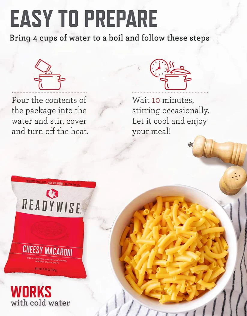 ESSENTIËLE SURVIVAL FOOD KIT: Elke zak bevat 28 porties met 7 verschillende maaltijdopties om uit te kiezen.